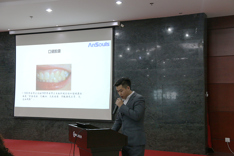隨后,劉羊孝老師以世界衛生組織提出“80歲應該擁有20顆牙齒”這一“8020”標準,以及國家衛生計生委提出“健康口腔”——重點關愛口腔國民健康計劃為切入口,為大家介紹了安科生物在關愛口腔健康方面的研發成果,即安科生物攜手國內頂尖口腔健康團隊研發推出了一款含有卵黃免疫球蛋白(IgY抗體),能夠精準解決牙周問題的安漱品牌漱口水,并邀請大家體驗漱口水產品。