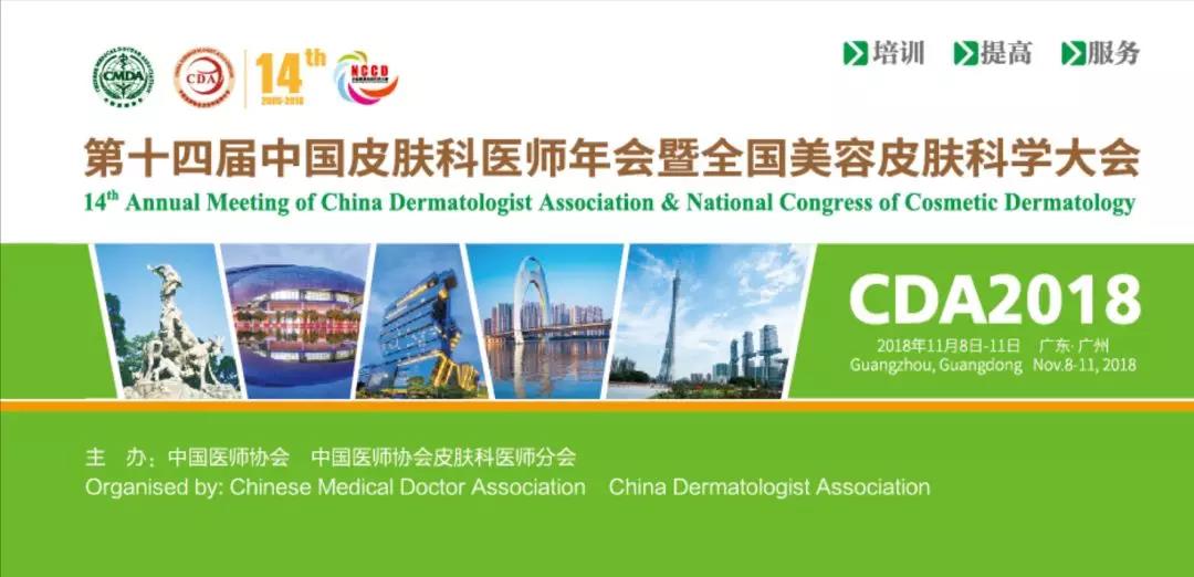 2018年11月8日-11日,第十四屆中國(guó)皮膚科醫(yī)師年會(huì)暨全國(guó)美容皮膚科學(xué)大會(huì)將于廣東省廣州市白云國(guó)際會(huì)展中心召開(kāi)。