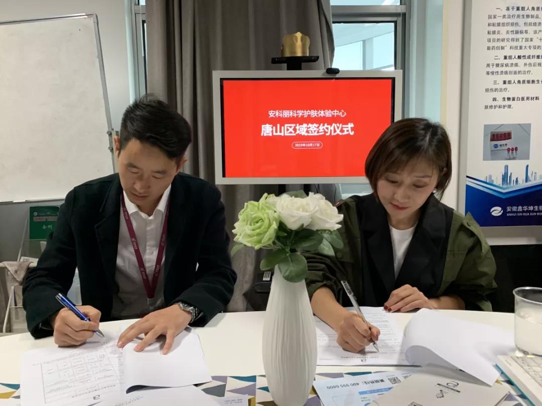 安科麗千城千店項目開啟一個月以來,28家店連開,嗅到商機的投資者也紛紛慕名而來。2019年10月16日,安科麗迎來了三位來自河北唐山的加盟商。在經過為期兩天的參觀考察,在17日果斷的簽下安科麗科學護膚體驗中心河北唐山店。