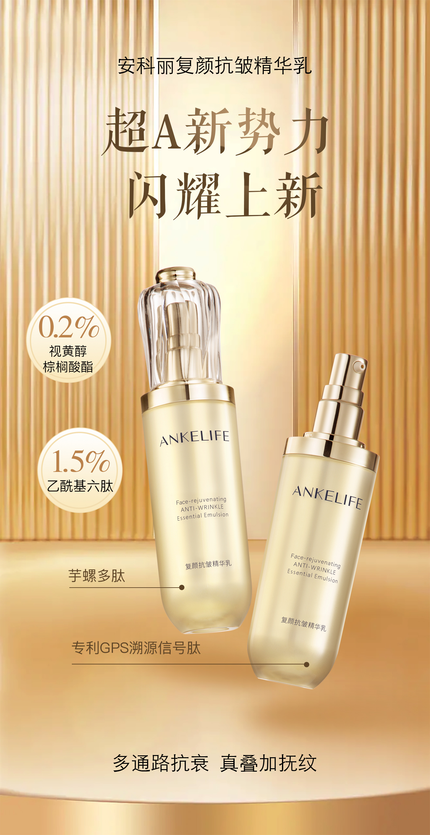 由棕櫚酰五肽-4、棕櫚酰四肽-7、三肽-1、六肽-9、棕櫚酰三肽-5、棕櫚酰三肽-1精準(zhǔn)配比復(fù)合成分,多路卓效協(xié)同促進(jìn)肌膚蛋白生成,幫助改善肌膚彈性和緊致度系統(tǒng)性抗老,強(qiáng)韌屏障,抵御傷害。