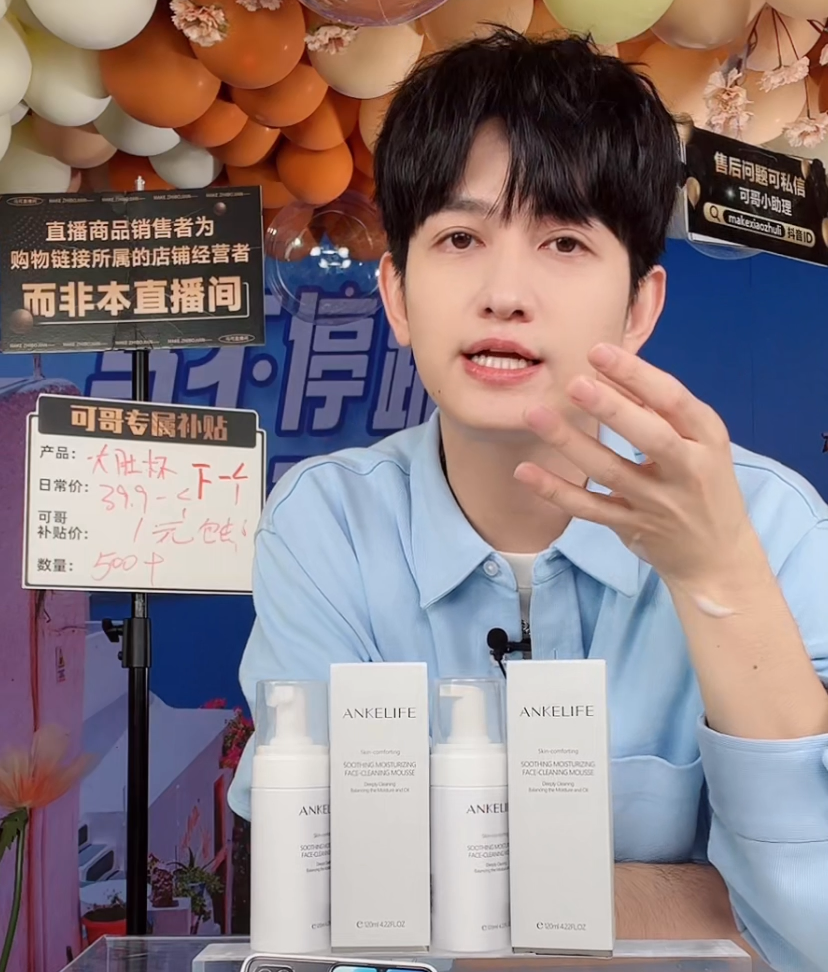 8月6日下午,明星演員馬可在抖音直播間分享了潔面的重要性,同時也在直播間向其千萬粉絲種草了安科麗舒緩保濕潔面慕斯。
